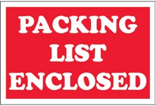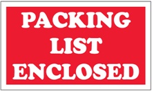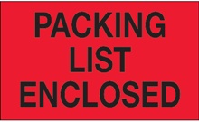 3 x 5" - "Packing List Enclosed" (Fluorescent Red) Labels