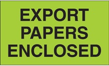 3 x 5" - "Export Papers Enclosed" (Fluorescent Green) Labels