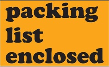 3 x 5" - "Packing List Enclosed" (Fluorescent Orange) Labels